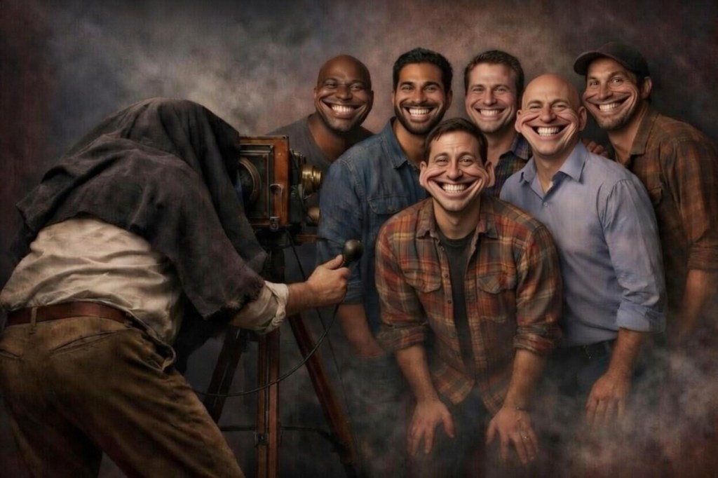 Much like this familiar scene, men are often programmed to wear a smile — not because they feel good, but because they’re expected to look like they do. Strength is confused with silence. Vulnerability is mistaken for weakness. And so the smile becomes a mask, carefully practiced and permanently worn.